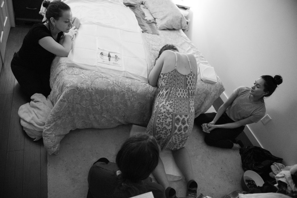 Our girls played upstairs while we went for a walk to get dinner. Contractions continued to get stronger while waiting in the sushi restaurant for our take out. Note to everyone do not have sushi if your in labour. I got my favorite Bento box and unfortunately it didn’t stay down. After dinner the girls went back upstairs to play before bed. I had a shower and luckily that’s when I tossed up my dinner. More labour pain started. Got hubby to call our midwife back. While waiting for everyone he also put our youngest to bed. Texted our doula and photographer to come as well.