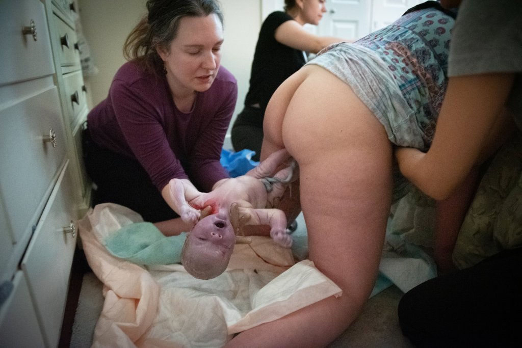 This birth I had to channel a deeper inner self. Once I moved into a area that had more room I could feel baby coming down. Because things were moving so fast the feeling was much more intense with each contraction. At one point I knew I was already pushing but I couldn’t relay that to my midwifes. I could picture my baby moving down into place and I could feel his head exactly were I needed it to be. With each contraction I would feel and picture where his head was and where I wanted it to be. Remembering that feeling once the head was birthed helped in this moment. Already having two births helped so much to go through a much more intense birth. I wanted to get to the goal of his head being born.