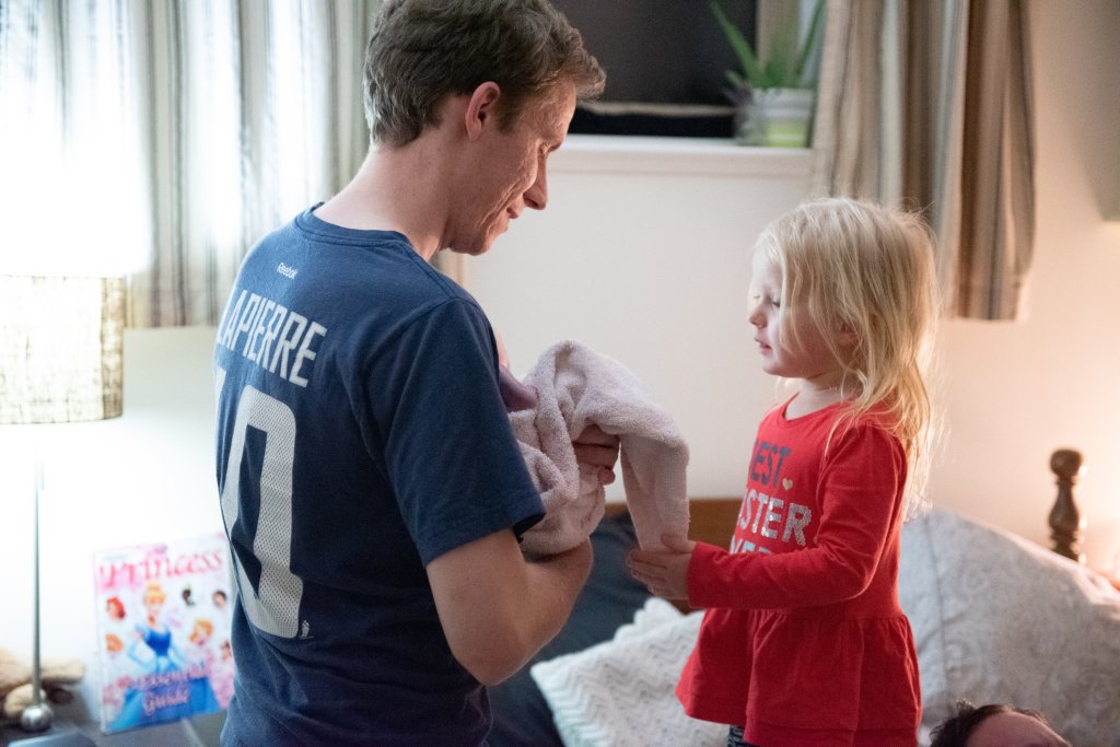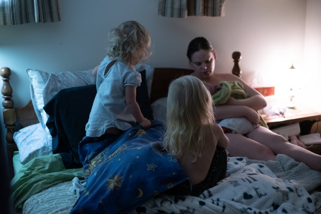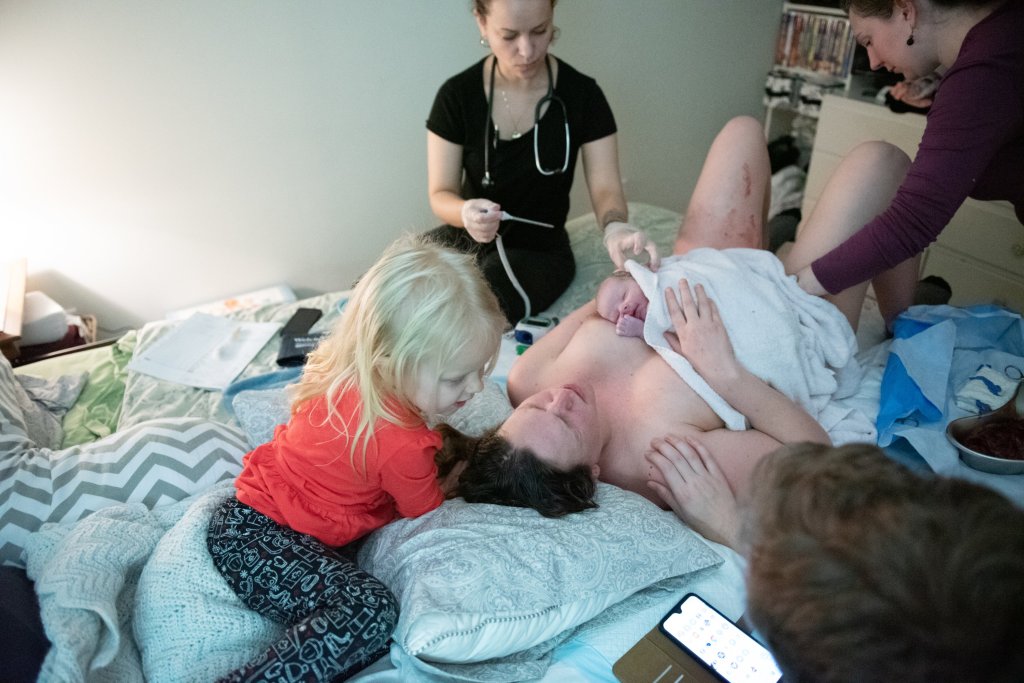 Our oldest stayed up since she didn’t want to miss any of it. Helping our midwife check baby’s heart rate, giving mommy hugs and hanging out with daddy. She ended up falling asleep somewhere around 10pm.